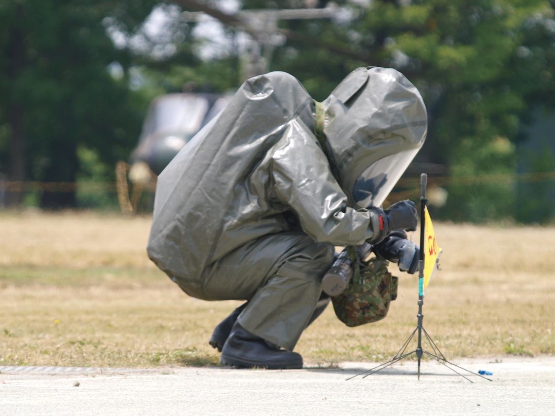 正体不明の化学物質が撒かれ、それをどのように処理していくかの訓練展示です。