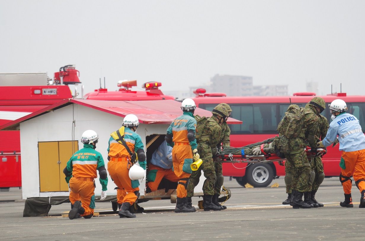 被災地に自衛隊、消防、警察の各部隊が投入され救助活動が