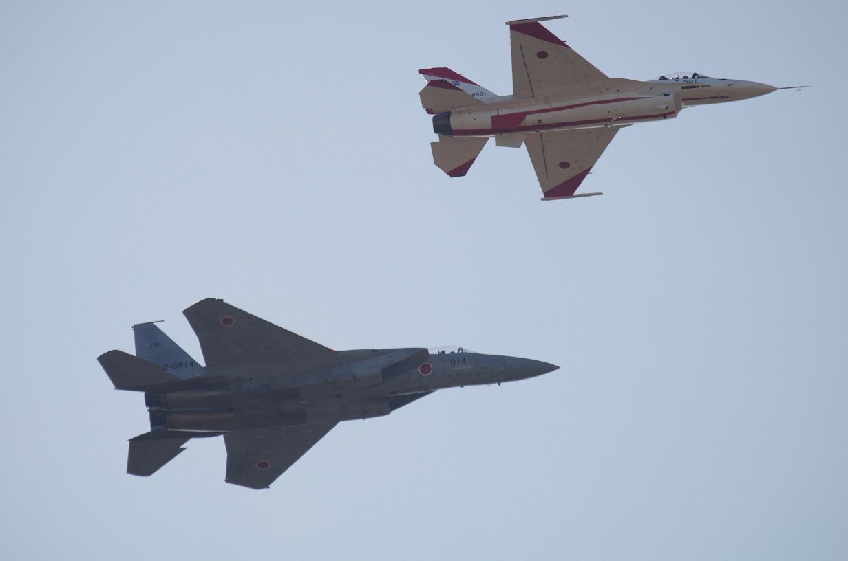 画像は「F-15JとF-2Aの編隊飛行」です。
