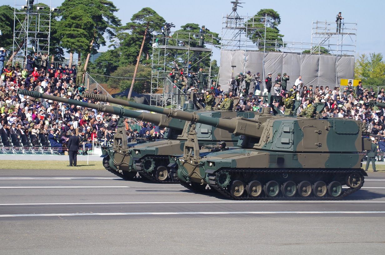 国産の自走榴弾砲で、最大射程は30kmあります。