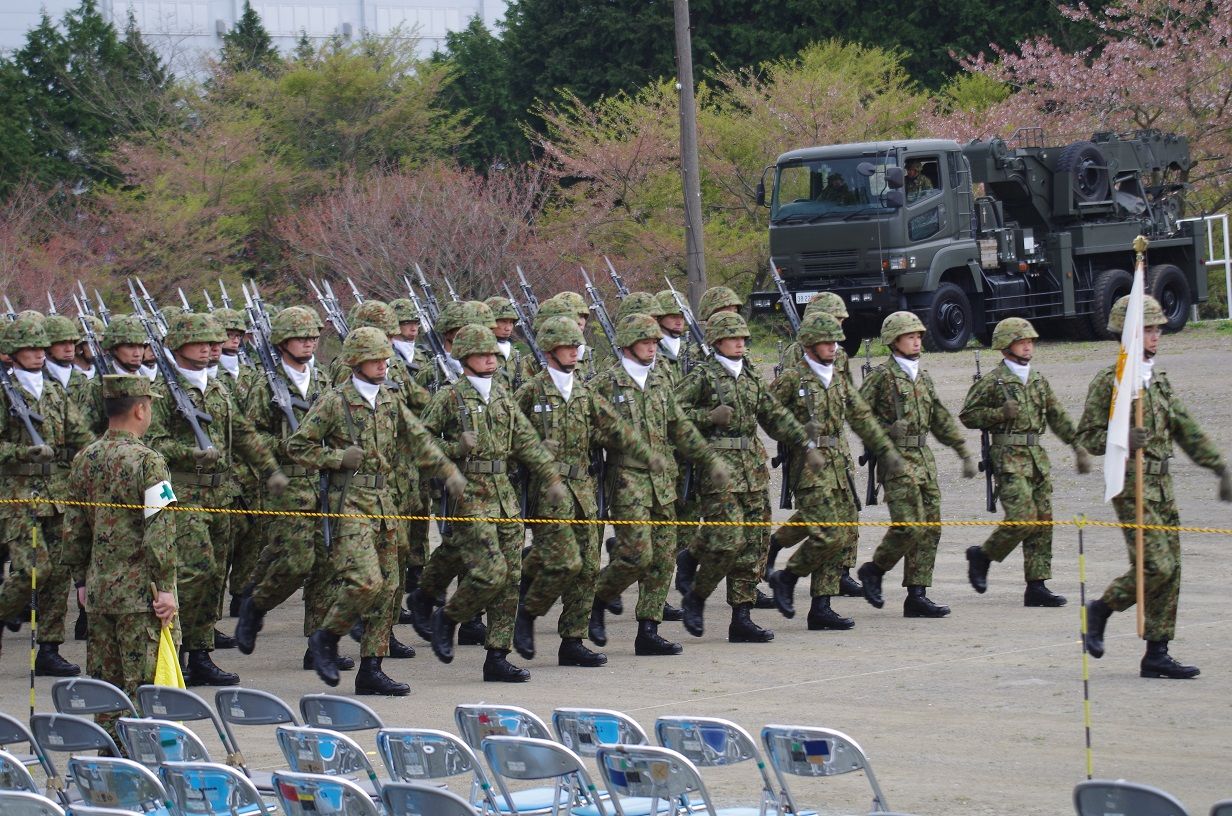 こちらは小銃携行に式典参加時の服装"甲武装"で行進します。