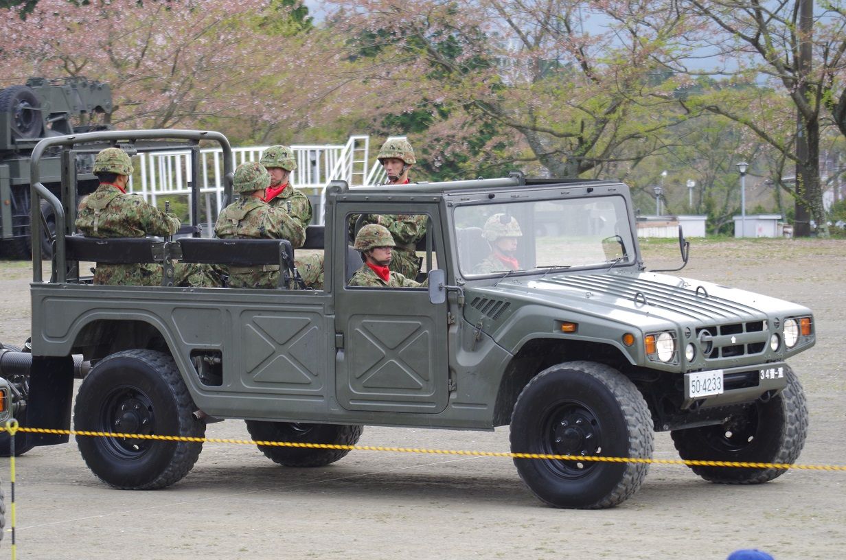 高機動車に多数の隊員が乗車しています。