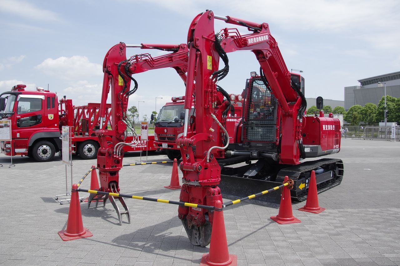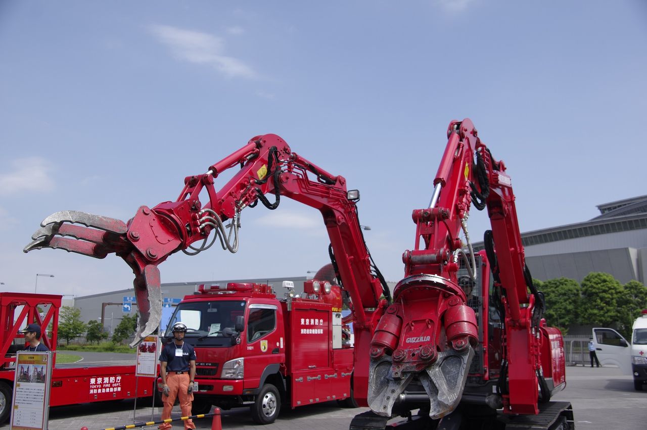 東京消防庁 消防救助機動部隊から、「双腕重機」が展示されています。