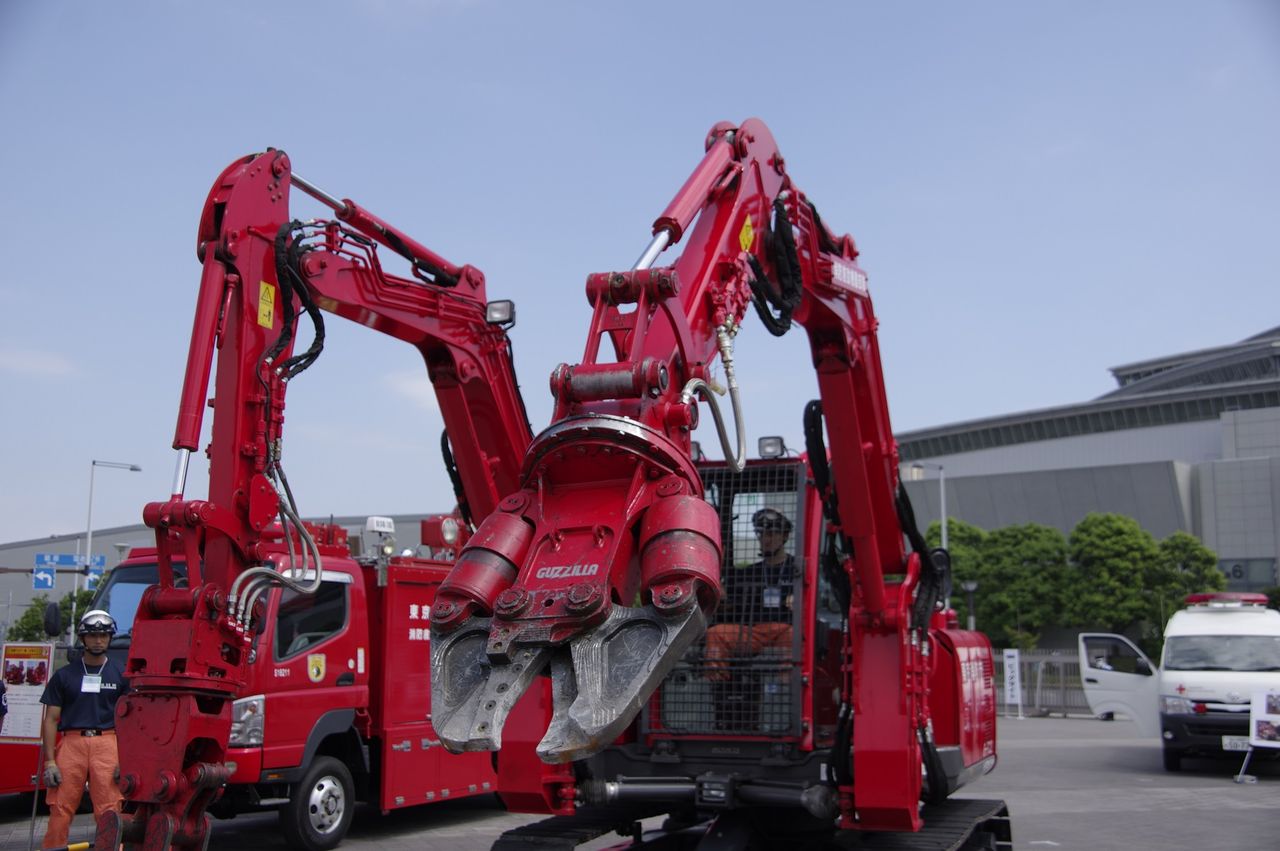 双腕重機は、倒壊した建造物からの救助に使用するため、