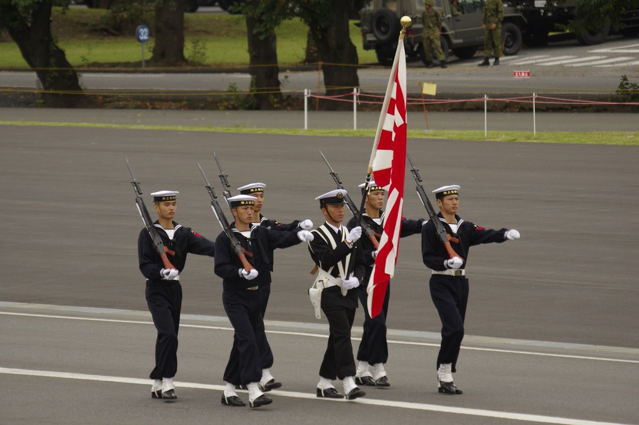 自衛艦旗を掲げた隊員が先導して、行進していきます。