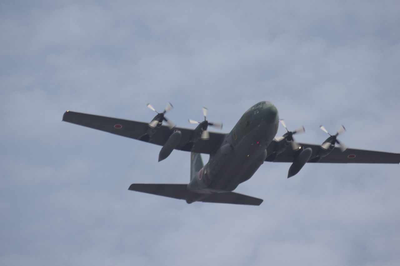 航空自衛隊飛行部隊、輸送機 C-130Hの3機編隊。