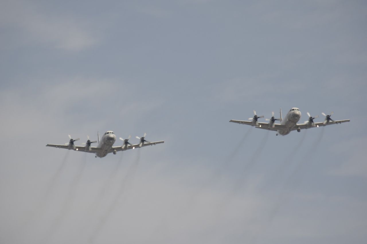 海上自衛隊部隊、対潜哨戒機 P-3Cの2機編隊。