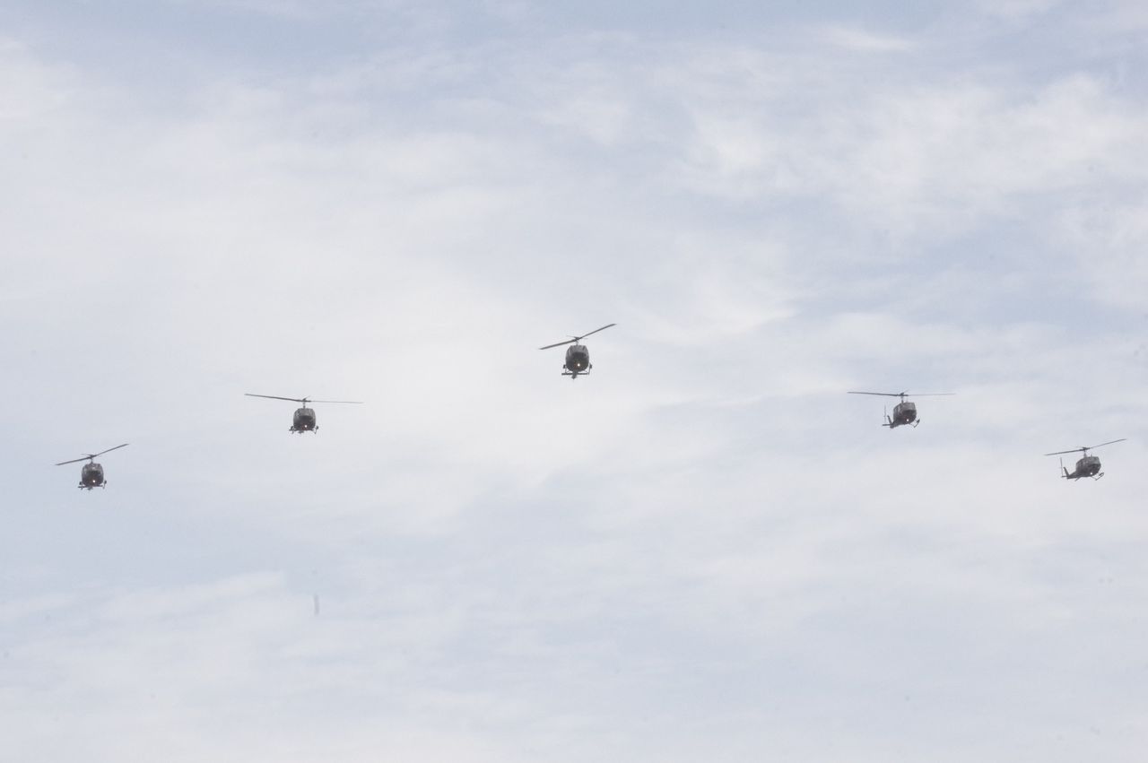 部隊の移動中に、上空にUH-1Jが飛来し、
