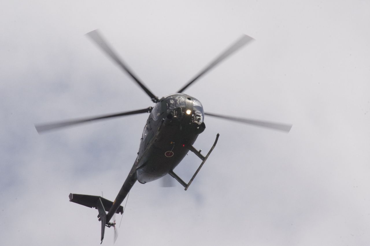 観測ヘリ OH-6Dの、5機編隊の飛行。
